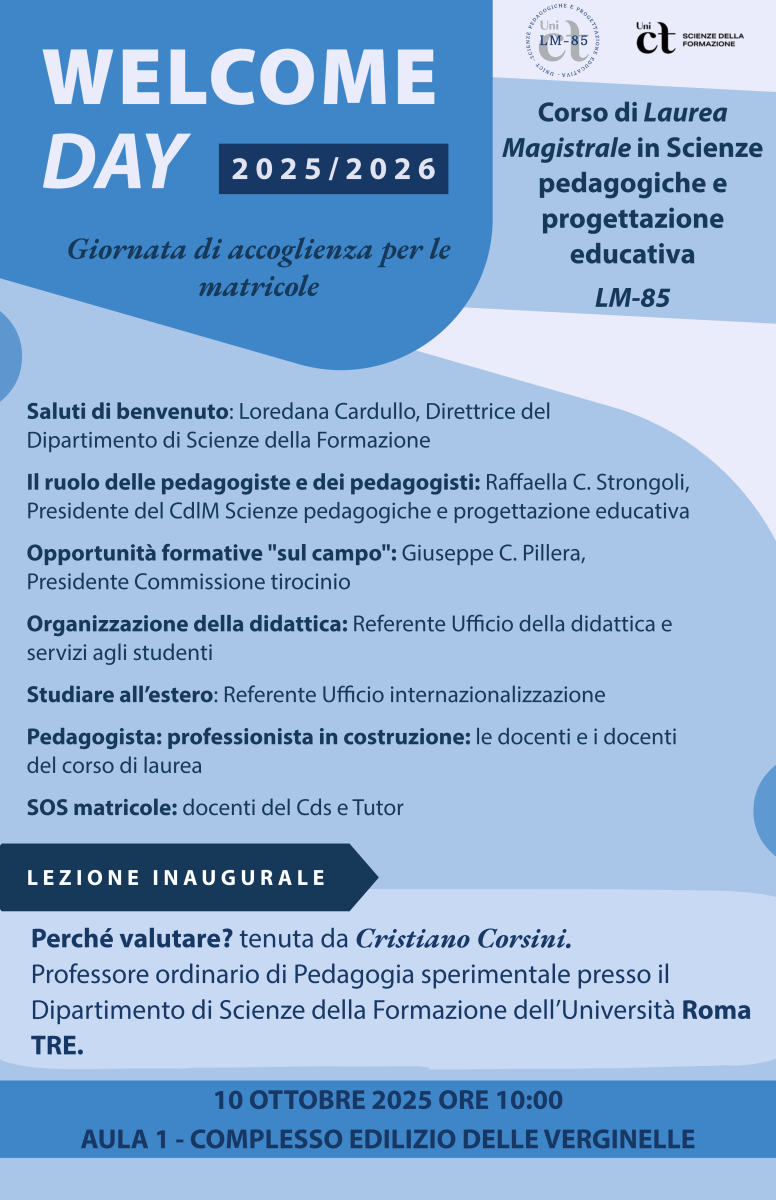 Welcome Day - Corso di Laurea Magistrale Scienze pedagogiche e progettazione educativa