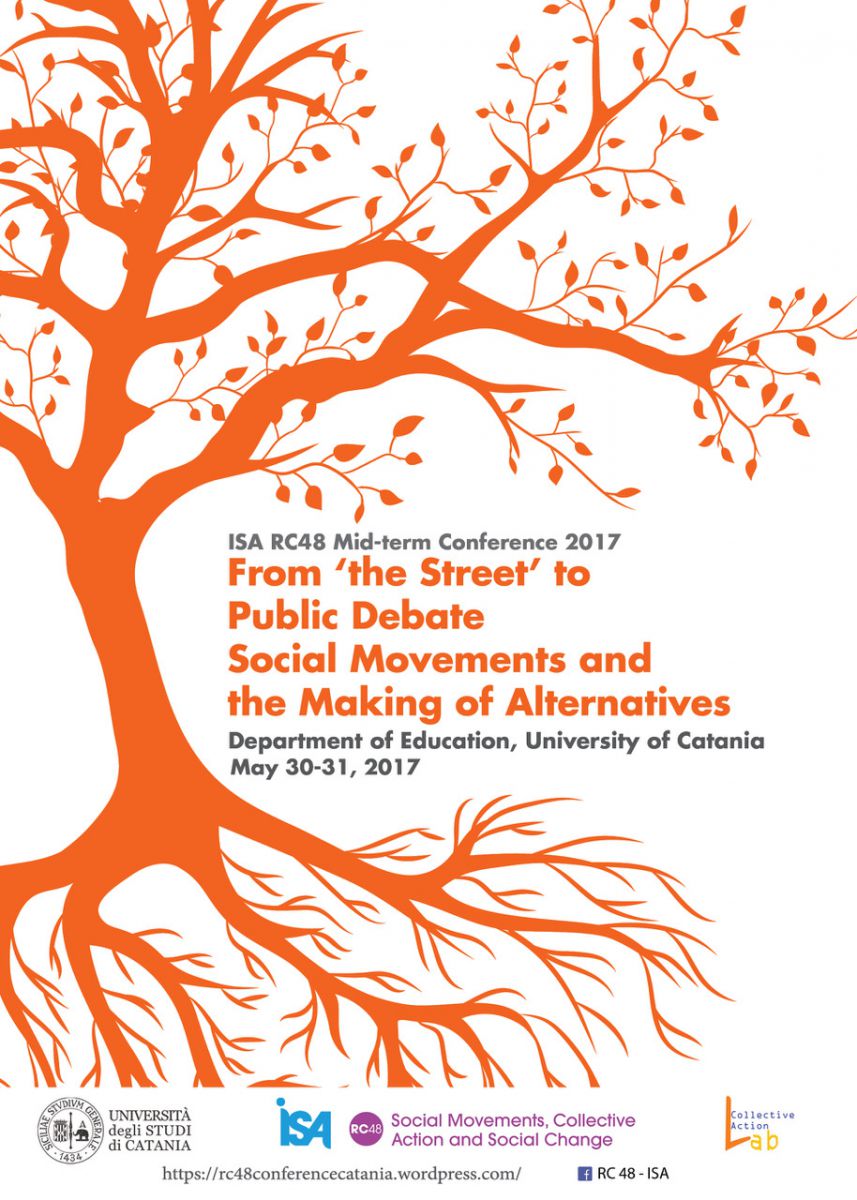 Nelle giornate del 30 e del 31 maggio 2017 si terrà a Catania presso il Dipartimento di Scienze della formazione la ISA RC48 Mid-term Conference From ‘the Street’ to Public Debate. Social Movements and the Making of Alternatives. Tutte le informazioni e il programma su https://rc48conferencecatania.wordpress.com/