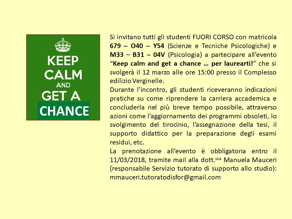 Il Prof. Di Nuovo comunica che non potrà tenere il ricevimento di lunedì 26 febbraio per la concomitanza del Senato accademico. Per le questioni urgenti il ricevimento è posticipato a martedì 27 sempre alle ore 16.