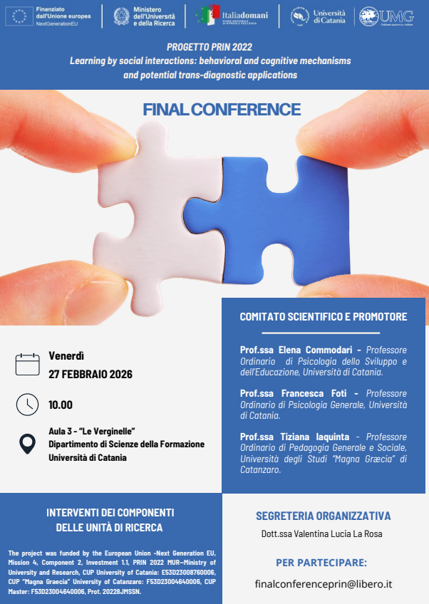 PROGETTO PRIN 2022 - Learning by social interactions: behavioral and cognitive mechanisms and potential trans-diagnostic applications
