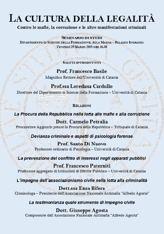 Si comunica che venerdì 30 novembre 2018 - ore 15.00 - sede Aula Magna "Santo Mazzarino" Monastero dei Benedettini