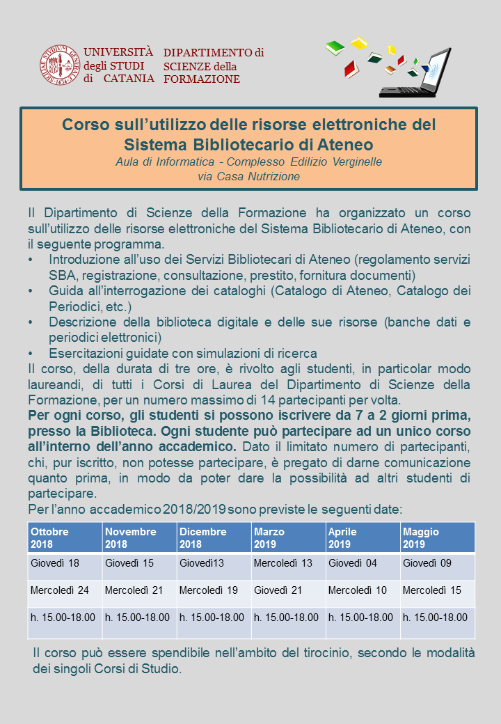 Biblioteca delle Scienze Pedagogiche e Psicologiche - comunicazioni orari apertura del 26.10.2018